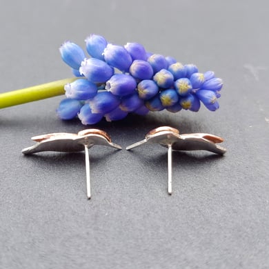 Tiny Butterfly Silver & Copper Stud Earrings